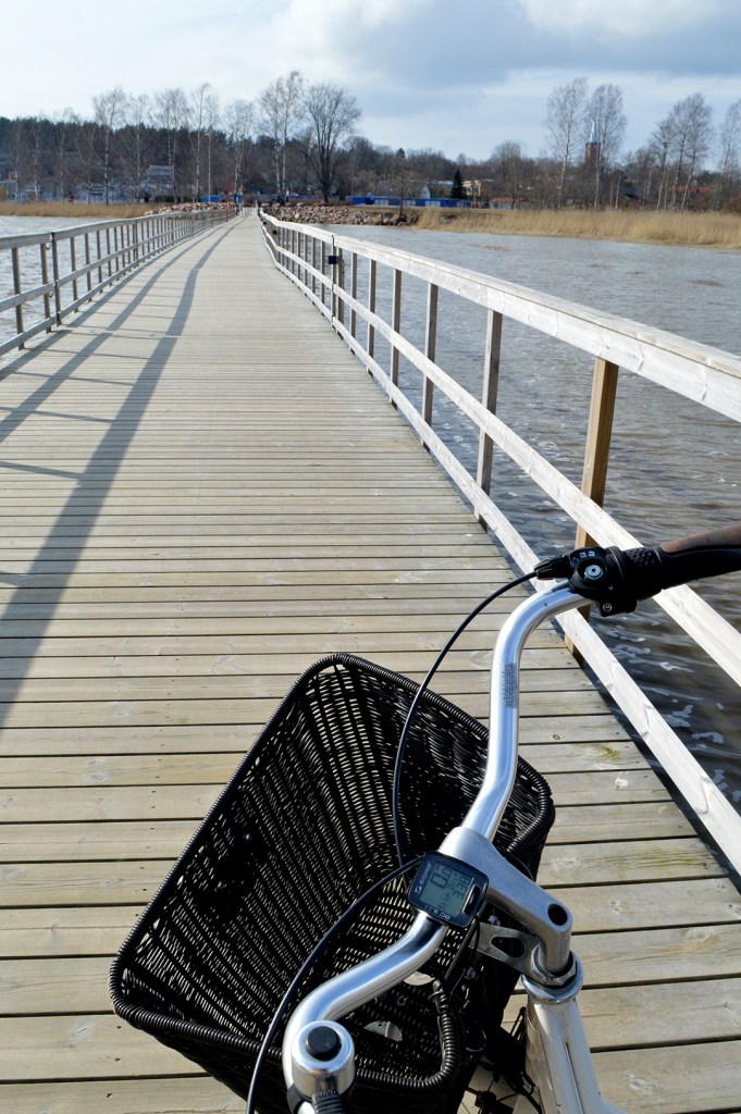 Gångbron gungade rejält i den sydvästliga vinden i söndags. Det här är ett av mina favoritutflyktsmål, från tidig vår till sen höst. En cykelrunda från hemmet, via Garnison till Märlax och från Drottningstranden tillbaka till vikens västra strand blir drygt tre kilometer lång.