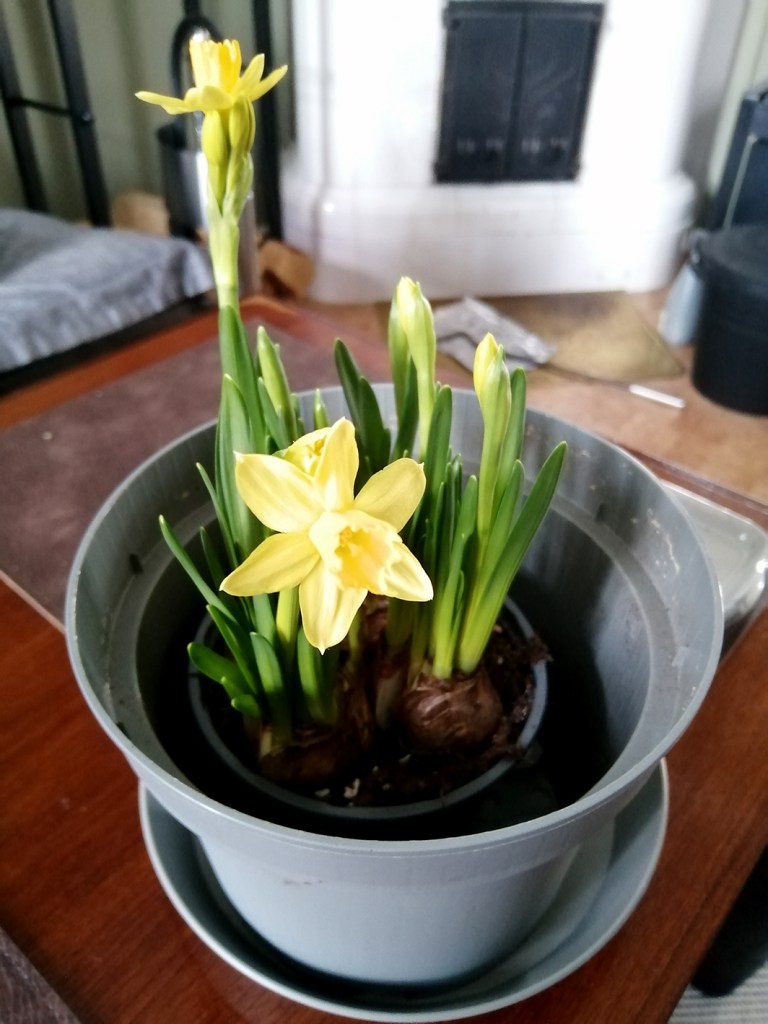 Nu har de alla slagit ut, narcisserna. Det går fort, men de brukar stå fina minst en vecka, ofta nog aningen längre.