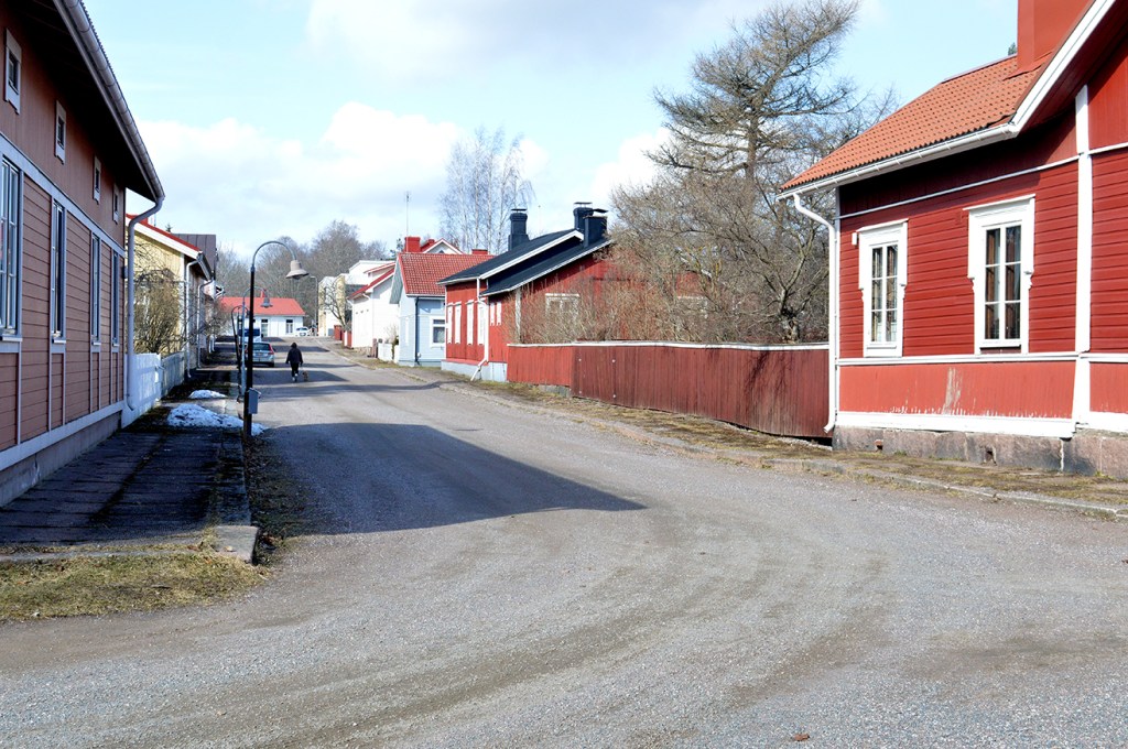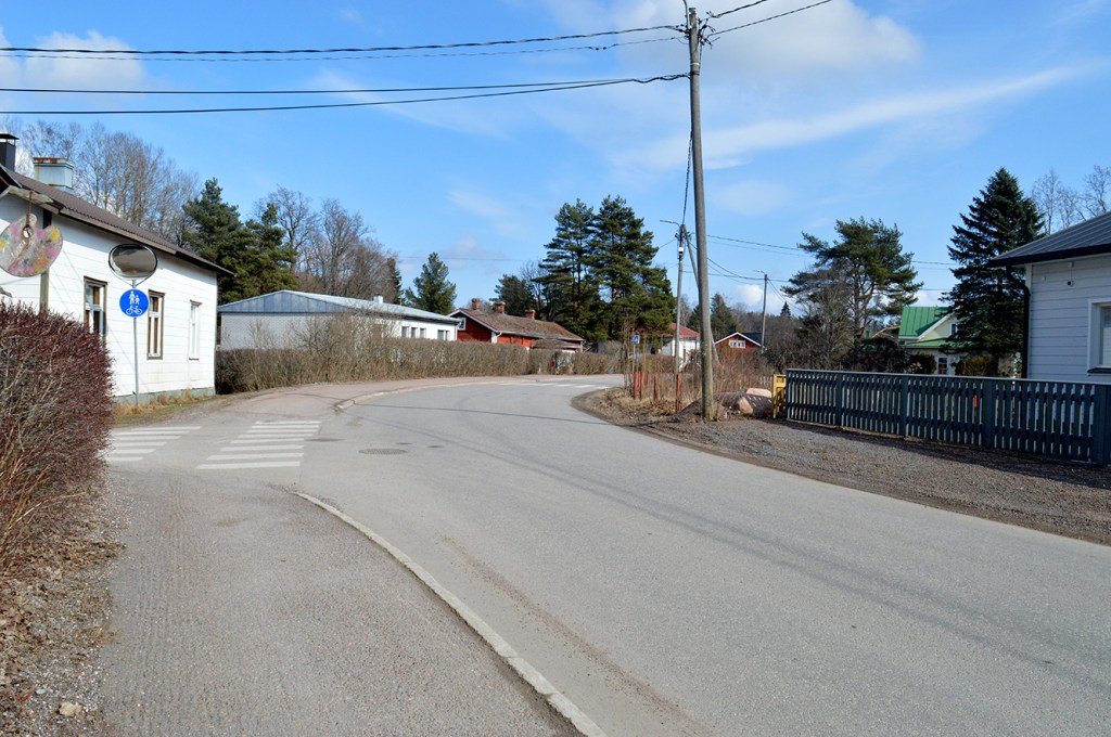 Här har miljön ändrats sedan jag var barn. Ett par hus har rivits och nya har kommit istället, men de två röda och det ena vita huset längre bort på vänstra sidan av gatan är gamla.