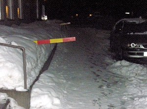 plankor för snö eller is som faller ned från taket? Då de här hindren