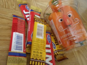 Nå, det var ju ändå något nyttigt, säger ni. Men vad hände sedan? Jo, jag snubblade nästan över en ställning med godis. Sex stänger för 1,95 euro. Klarade mig inte förbi den fällan.