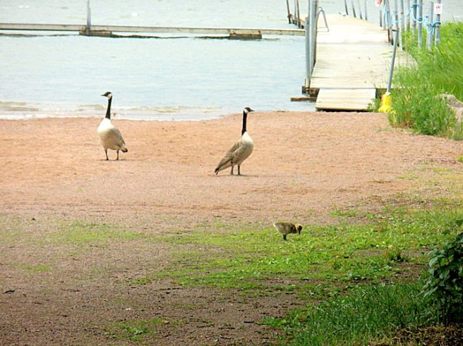 Jag hade ”bara” min lilla digikamera med mig och vågade inte gå nära de stora fåglarna. De skyddade den lille ungen som hade kommit bort från flocken.