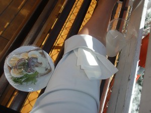 Trodde däremot inte att jag var så amatör som jag var. Smorde in armar och ben men blev ändå ganska röd på överarmarna… nååå, det verkar svänga mot brunt så småningom 🙂