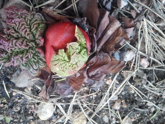 Ett annat av Gubben Guds underverk är rabarbern. Från denna färgglada knöl växer det snart fram saftiga stänglar och stora gröna blad. Med hjälp av de stora fina bladen och cement kan man göra praktiska trädgårdsprydnader. Men vill ni veta hur det går till måste jag vända mig till min svägerska för att få exakta råd.