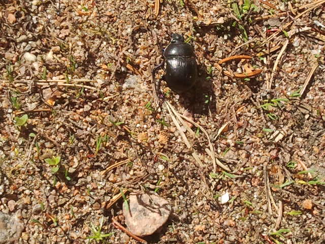 Avnjöt den riktigt första, soliga och varma vårdagen på K16 i dag. Fick rätt snart syn på en skalbagge. Har lite obehag för dem, men tänkte att Gubben Gud har inte skapat baggen utan orsak. I fjol krossade jag i misstag en bagge och jag kan än i dag höra hur det lät då hans liv slutade under ett av fyra stolsben. Jag tänkte att den här baggen nog hade kommit för att hämnas sin mördade släkting, men han anföll mig ändå inte.