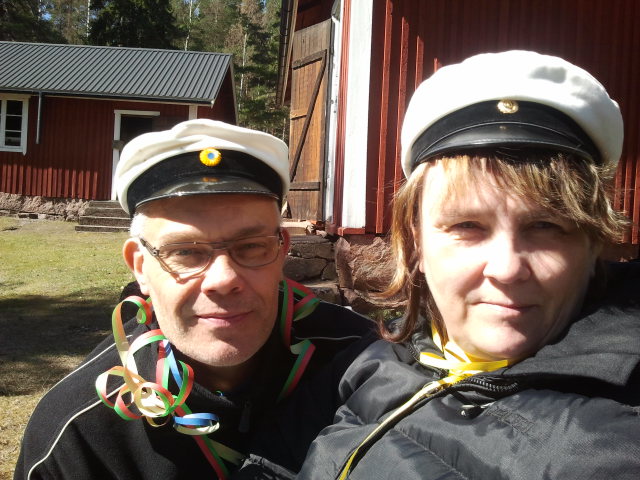 Första maj firades på K16 med mousserat och efter det grillade vi korv. Det blåste lite men solen sken från en klarblå himmel och det blev en skön eftermiddag och kväll. Foto: Ingegerd Raaska