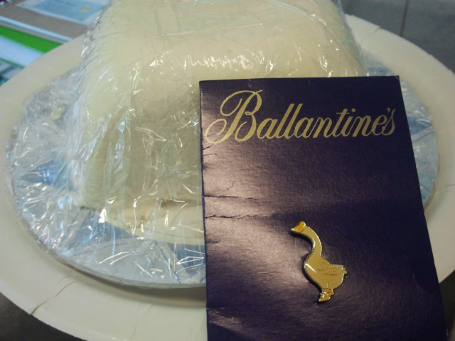 Och inte nog med det. Han fick också en Ballantines-pins. Så jag behöver inte förklara vilken whisky han gillar bäst.