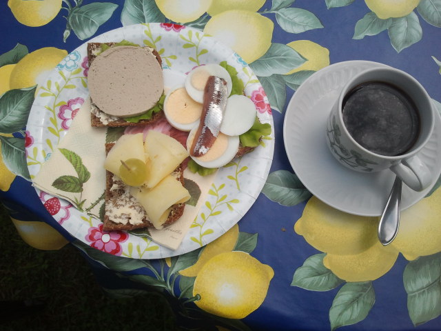 I torsdags hade vi kafferep på K16. Värdarna hade dukat så fint inomhus då det var ostadigt väder men vi kunde sitta ute och mumsa i oss de här läckra mackorna. Idén med de ihoprullade tunna ostskivorna och vindruvan var extra fin.