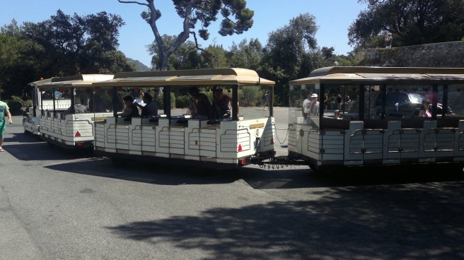Det kan ju onekligen anses som trist att vara en turist. Man ska ju helst sy ihop något eget och extremt äventyr (har nog i planerna ett för mig egen del ännu, men, men… det får ni vänta på)… I alla fall var det ett sådant här sightseeingtåg vi åkte i. Till och med maken, som vanligtvis gillar att bestiga små kullar och berg, tyckte det var bra att vi tog tåget upp till utsiktsplatsen. Vi fick också se andra delar av Nice under turen.