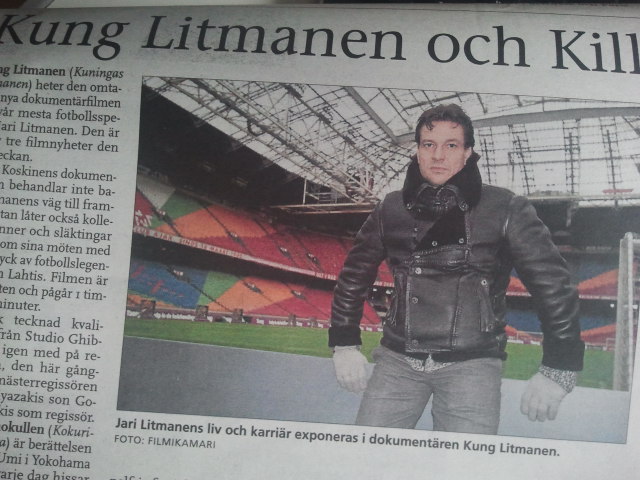 På bilden har Tor gjort mål och en del av fansen jublar i bakgrunden. Många av oss åker med på alla bortamatcher, till och med ända upp till Seinäjoki och i år även till Uleåborg.