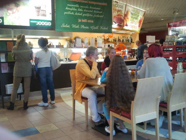 På den här lunchbaren i ett shoppingcenter strax utanför stan stannade vi upp. Observera tjejens hår, det var långt det 🙂