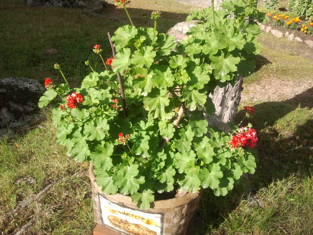 De här pelargonerna har svärmor drivit upp från små skott i våras. I dag finns det tre så här stora växter på sommarstället.