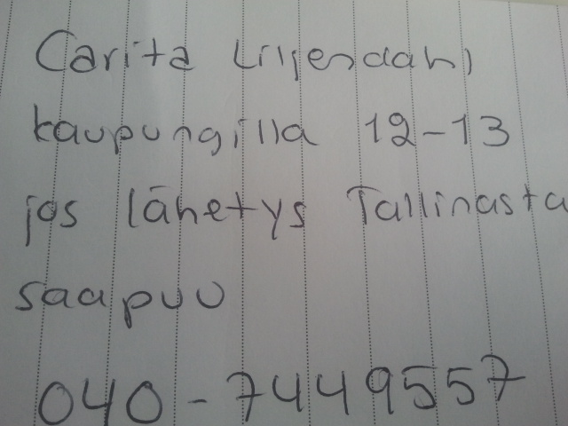 I brådskan stavade jag Tallinn fel. Vilket måhända fick grannarna att tänka besynnerligt vad bråttom hon haft och konstigt så viktig leverans hon har att vänta.