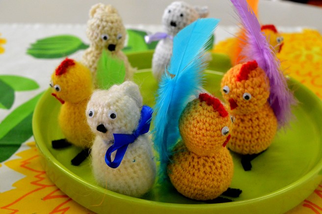 Dom där virkade kycklingarna var riktigt söta. Dom blir man glad av:-)