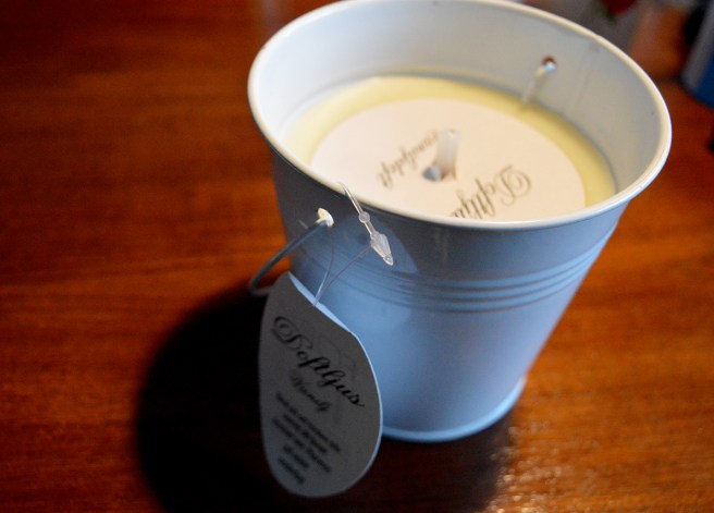 Från affären som ligger granne med optikern köpte jag det här ljuset. Jag är inte så förtjust i doften vanilj, men den här var väldigt mild. Ljuset har jag ute på balkongen, det eliminerar lukten av cigarettrök som kommer från en annan balkong. Ljuset kostade bara två euro då man i affären vill göra plats för vårens nya varor.