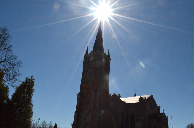 Solen lyste med trevlig styrka också i går då jag tog den här bilden. Här strålar den ovanför Lovisa kyrka, som också i sig säkert gett många STYRKA.