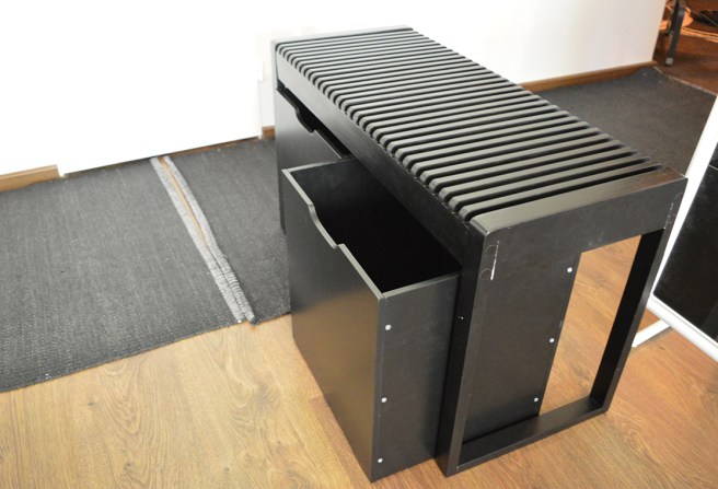 I lådorna ska jag ha tidningar som ska gå till pappersåtervinning. Hittills har de stått i en papperskasse i hallen – inte vackert. Samma gäller tomflaskor och annat som jag inte bär ut varje dag.