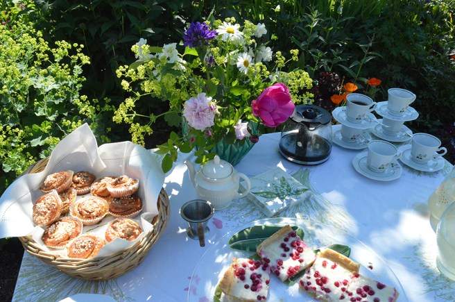 Att någon dukar upp så fint i trädgården, och att där få sitta och prata med vänner – så värdefullt!