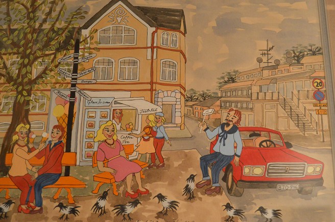 Kerttu Lähteenmäkis tavla blir man glad av. Motivet är från Lovisa, glasskiosken finns där vid gamla postens hörn.