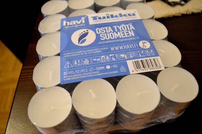 Och så har jag ”köpt jobb till Finland”, eller mer fritt översatt ”gett arbete åt finländare” genom att köpa inhemska värmeljus. Lite dyrare än de jag hittade på Tokmanni för nån vecka sedan. Men jag tror att de här brinner jämnare, för de där billigare har sannerligen brunnit dåligt och ojämnt. Ofta har kanter av stearin funnits kvar då ljuset bara brunnit ner i mitten.
