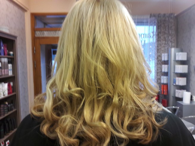 I kväll firar Nya Östis julfest. Mitt hår behövde toppas och samtidigt passade jag på att be frissan fixa till lite lockar. Jag kan göra det själv, men får det sällan snyggt där bak (på bakhuvudet alltså) – hahaaa 😀