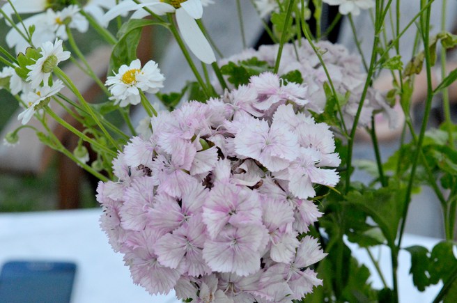 Blomster som prydde bordet på torsdagens 50-års fest.