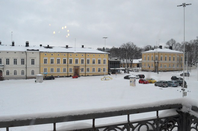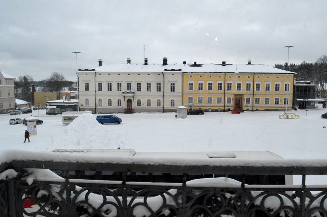 Ni som gillar bilder från Lovisa får nu se vyer tagna inifrån rådhuset, ut över torgmiljön. Varsågoda!