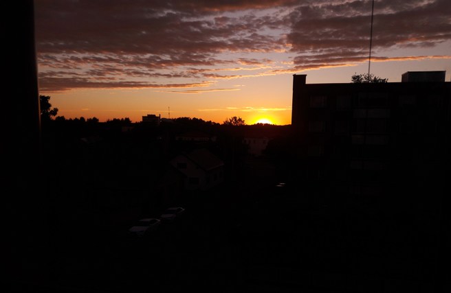 Inkvarteringen kostar ingenting och bjuder ibland på så här fin solnedgång, så om gästen börjar gnälla tar jag bort madrassen!