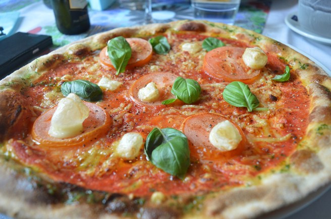 Jag vet inte vad ”osten” är gjord av men god är pizzan, frasig och tunn.