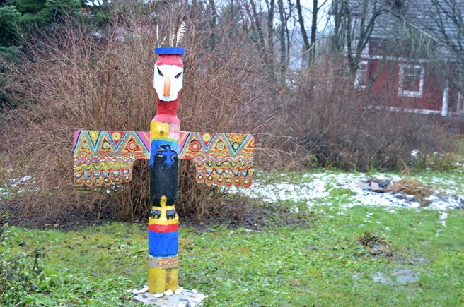 En färgglad totem med vingar. Hur fint som helst. Å färg blir man alltid glad av, speciellt när dagarna är så gråa och mörka.