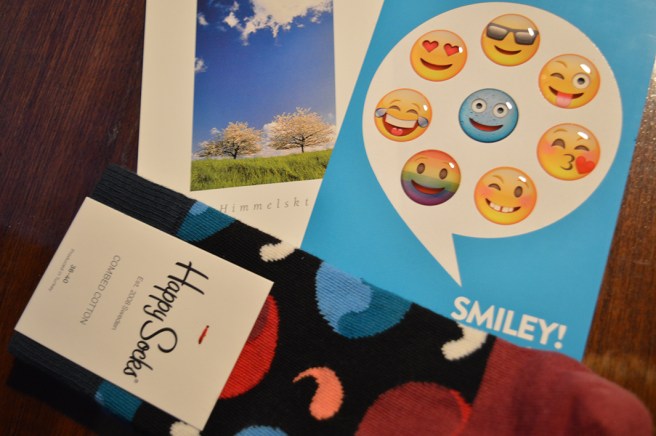 2. Glad måndag önskar jag dig. Så roligt med vykort men tyvärr är det inte vanligt nu för tiden. Sockarna gillar jag.