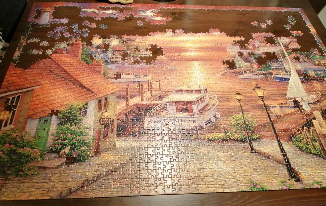 Jag skulle ta fram mitt puzzel egentligen. Nu har det legat till sig hela vintern och jag har totalt glömt bort det. Puzzla är ju så roligt. Lycka till med ditt, ännu har du några timmars jobb kvar ser det ut som.