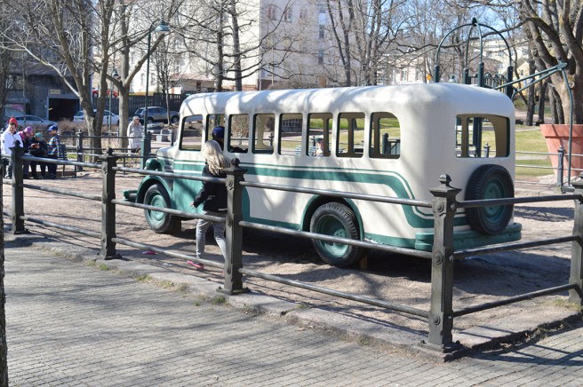 I östra grannstaden finns en fin park med många skulpturer och en buss som barnen kan leka i.