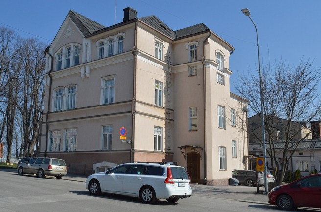 Vårt gamla posthus och en vårdag med sommartemperatur kring +20 grader.