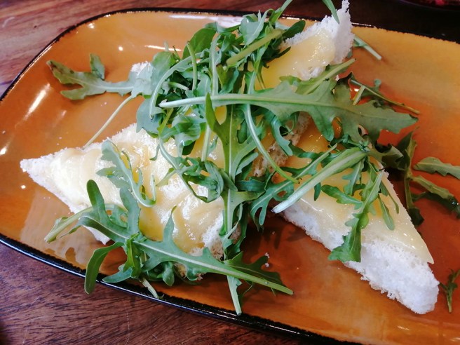 Jag har ätit vitlöksbröd och nachos med salsa tillsammans med Ann-Britt. Gott var det som bara den. Focaccian såg blek ut men smaken var superb!