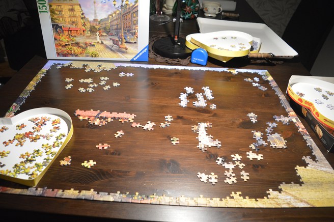 Men nu ska jag koppla av med pussel. Läget innan jag fortsätter den här kvällen ser ut så här.