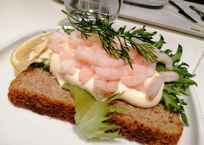 En räkmacka kostade 3,90. Prisvärt och gott!