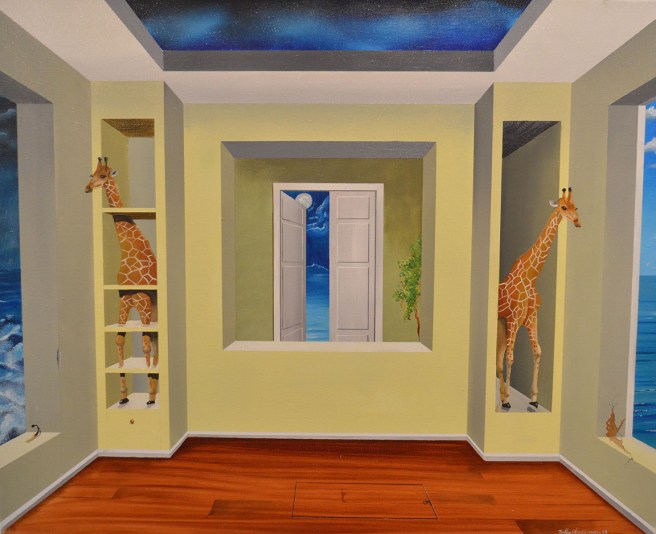 Där fanns tavlor av flera konstnärer. Minns inte vad personen som hade målat denna hette.