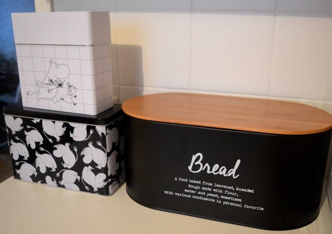 Hittade i går en snygg förvaringsburk för bröd, helt i min smak. Nu får de trälådor med nät som stått här tidigare fylla en annan funktion på ett annat håll i mitt hem.