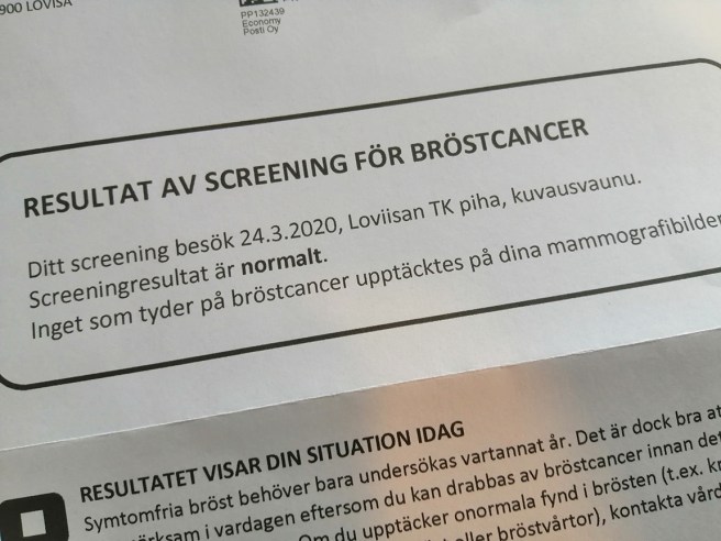 Goda nyheter också efter mammografin som gjordes för en dryg vecka sedan. Jag är tacksam och glad ❤