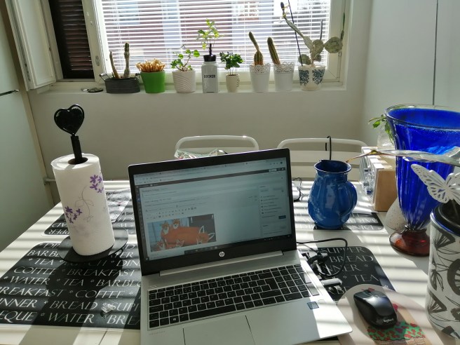 På sommaren kan här bli för varmt att jobba utan att ha persiennen nedfälld, men nu är här bara perfekt ❤