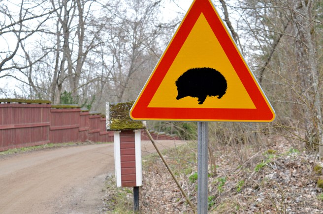 1. Varför har vi inte såna skyltar på Gotland? Igelkotten är ju vårt landskapsdjur och det blir mindre och mindre av den. Förr låg det ständigt överkörda igelkottar på vägarna, nu ser man det nästan aldrig.