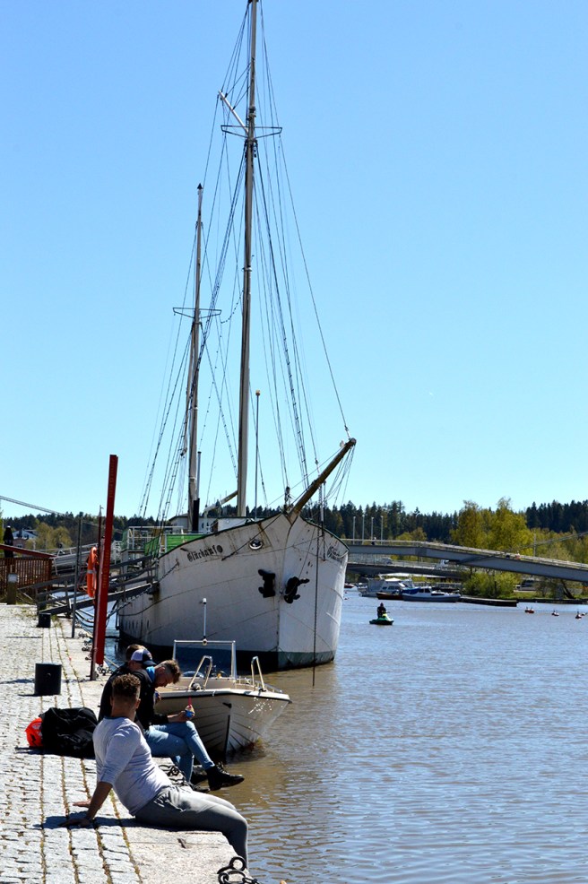 Njöt av solen och värmen, det gjorde många andra också i Borgå i dag.