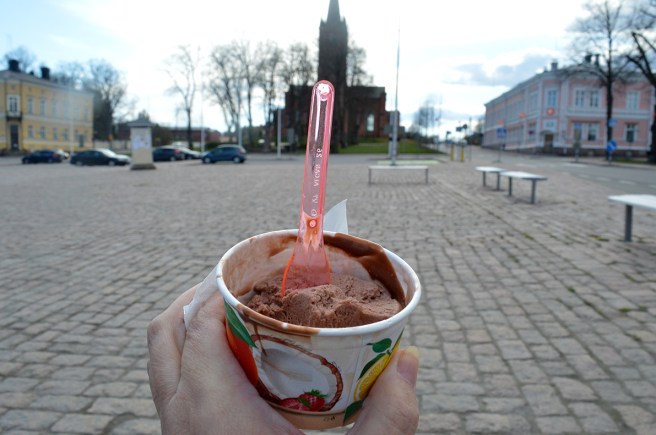 Det ser folktomt ut som vanligt i Lovisa på bilden med den italienska glassen. Men många rör sig nog utomhus nu. Vi får så småningom börja göra lite mer, gå till bibban till exempel. Och restauranger och cafeterior får öppna den första juni. Dock bör vissa regler om avstånd och hygien och annat följas.