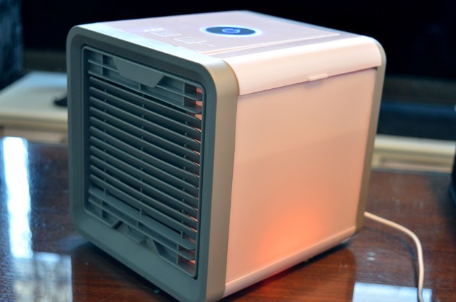 Men till Polaires försvar vill jag nu säga att paketet faktiskt kom och att produkten motsvarar mina förväntningar. En liten bordsfläkt som funkar så att man fyller en vattenbehållare och sätter i gång fläkten. Inga avancerade system med vatten som måste ledas bort på något sätt. Ett filter behöver bytas, ungefär en eller två gånger i året, beroende på hur mycket fläkten är i användning.