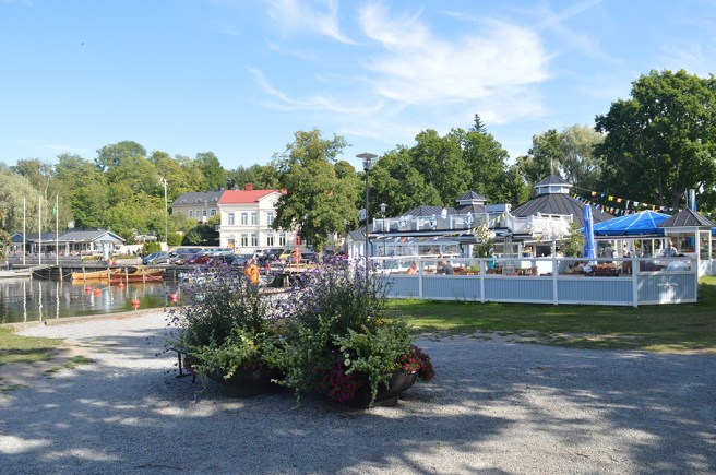 Vi har besökt restaurang Knipan och vandrar tillbaka mot Stallörsparken och hamnområdet.