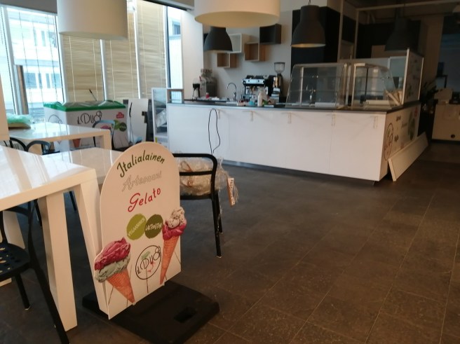 Här i köpcentret Gallerias övre våning fanns bokhandeln förr. Där torde inom kort öppnas en italiensk glassbar.