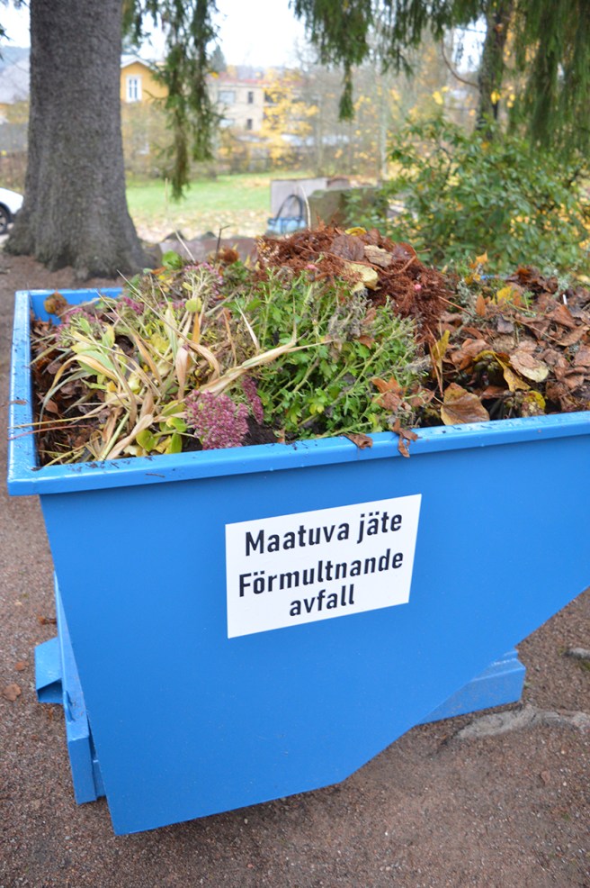 För inte så länge sedan var skyltarna otydliga och fula på gamla kyrkogårdens avfallskärl. Nu ser det betydligt bättre ut och en ny sorteringsplats har dykt upp.