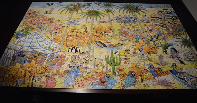 Dom där pusslen är ju dom roligaste att lägga, det händer så mycket! Nu var det länge sen jag la nåt pussel alls. Saknar min svägerska i Sverige som tycker det är kul att vända på bitarna… 😉