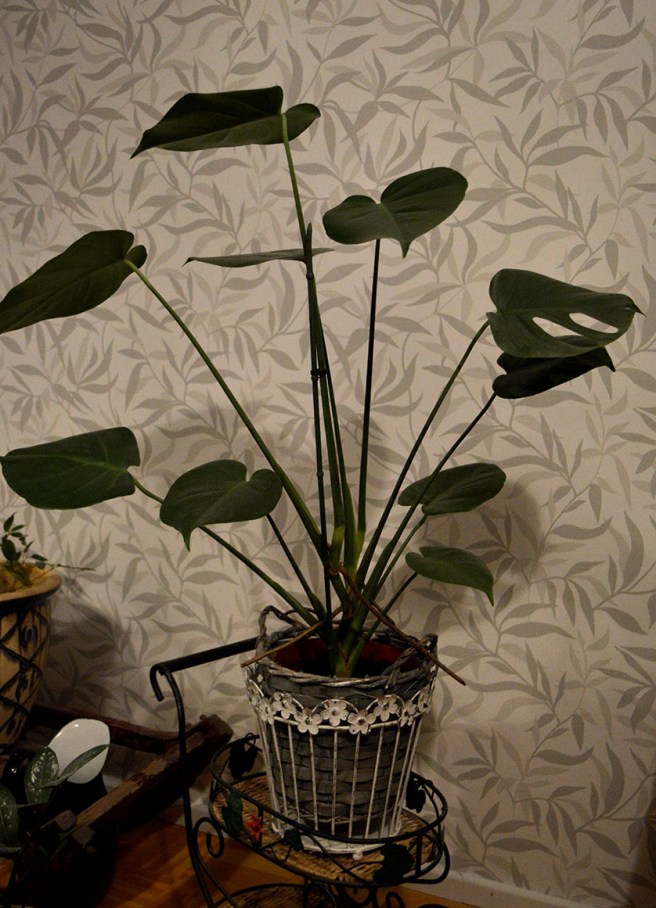 Monsteran lär trivas i liten kruka, den bildar sina luftrötter och klarar sig. Men jag var nog lite rädd att den någon vacker dag ändå skulle säcka ihop och ge upp.